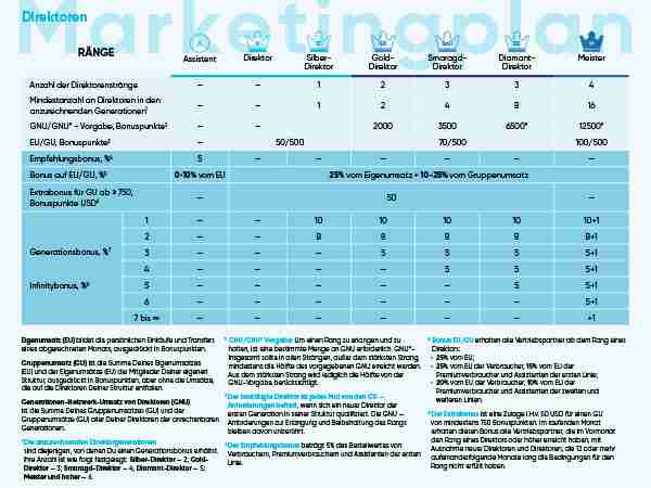 Der Marketingplan ist der Vergütungsplan, nach dem ein MLM-Unternehmen seine Vertriebspartner bezahlt, so dass sich die Höhe der Provisionen der Vertriebspartner nach dem jeweiligen Vergütungsplan richtet.