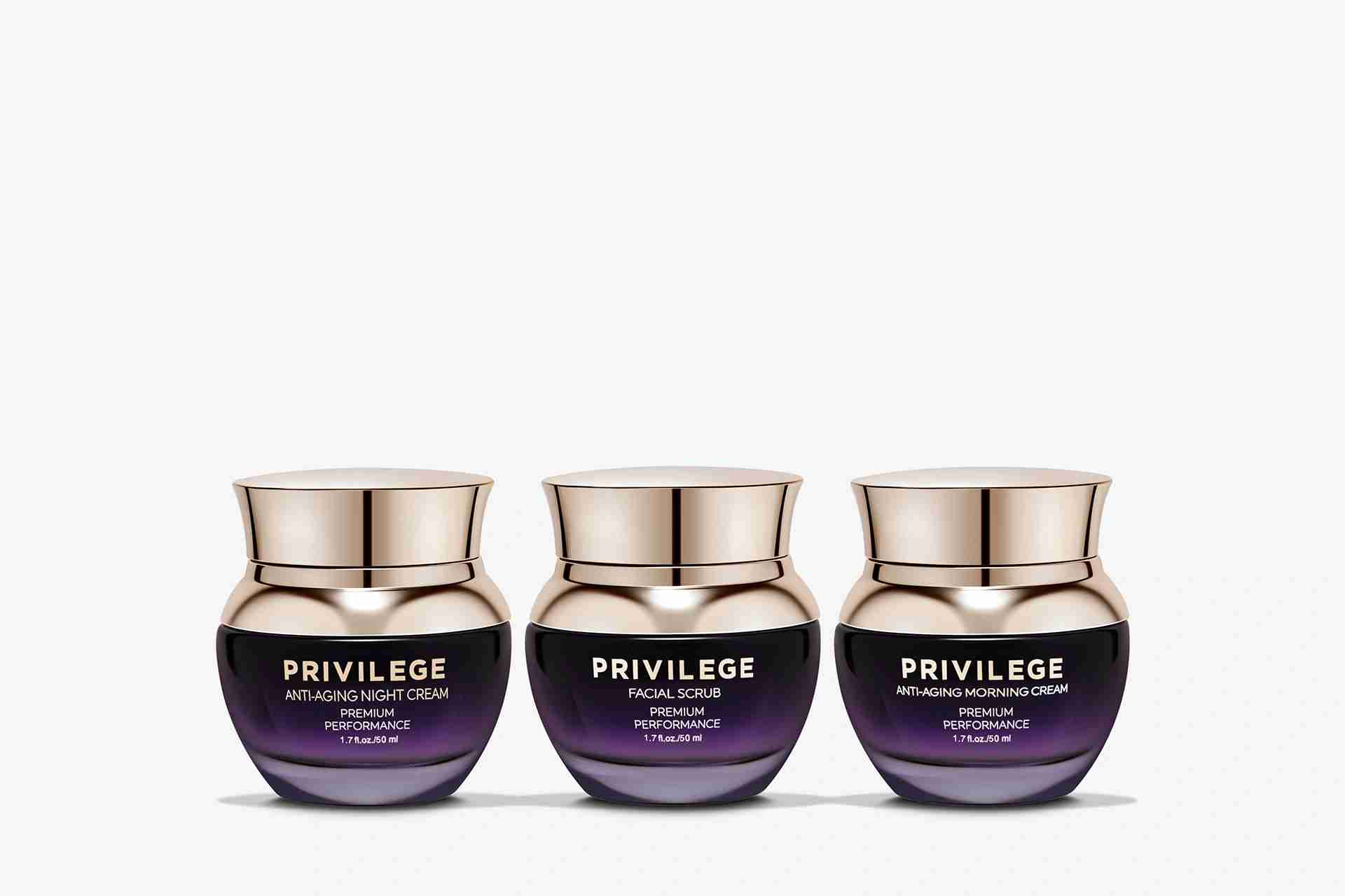Ein Schönheitsritual für strahlende Haut - sanftes Peeling, Anti-Aging-Tagespflege und Regeneration über die Nacht.